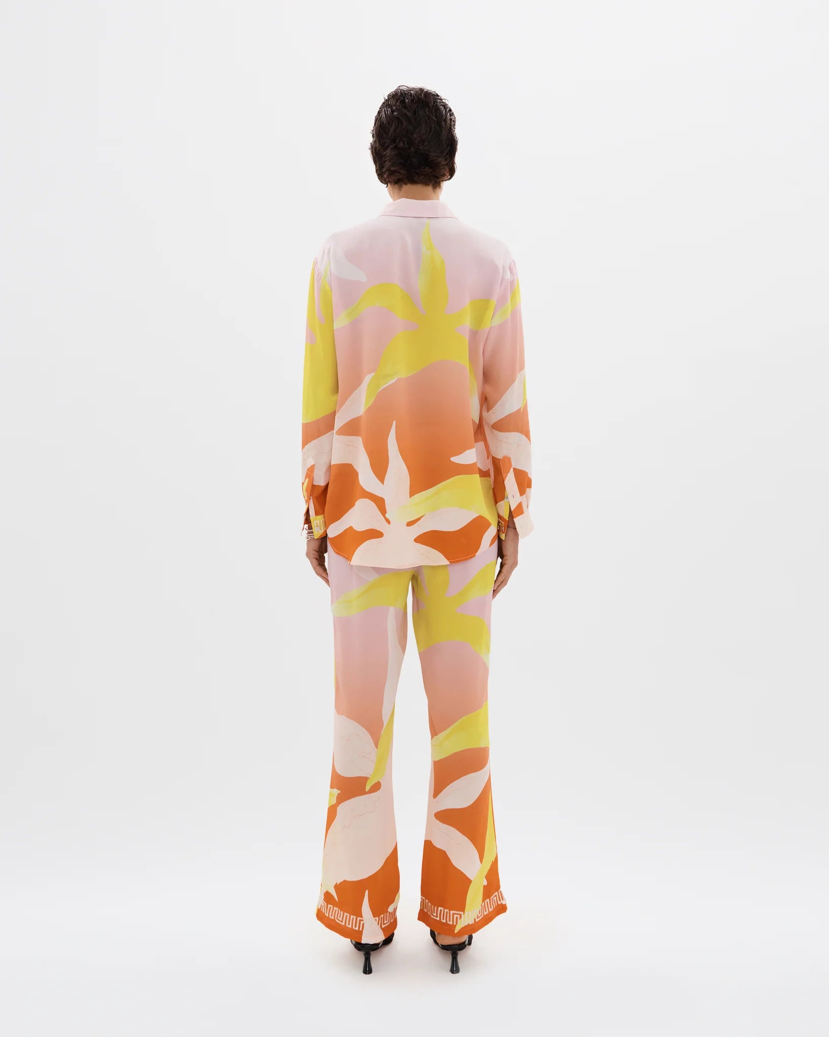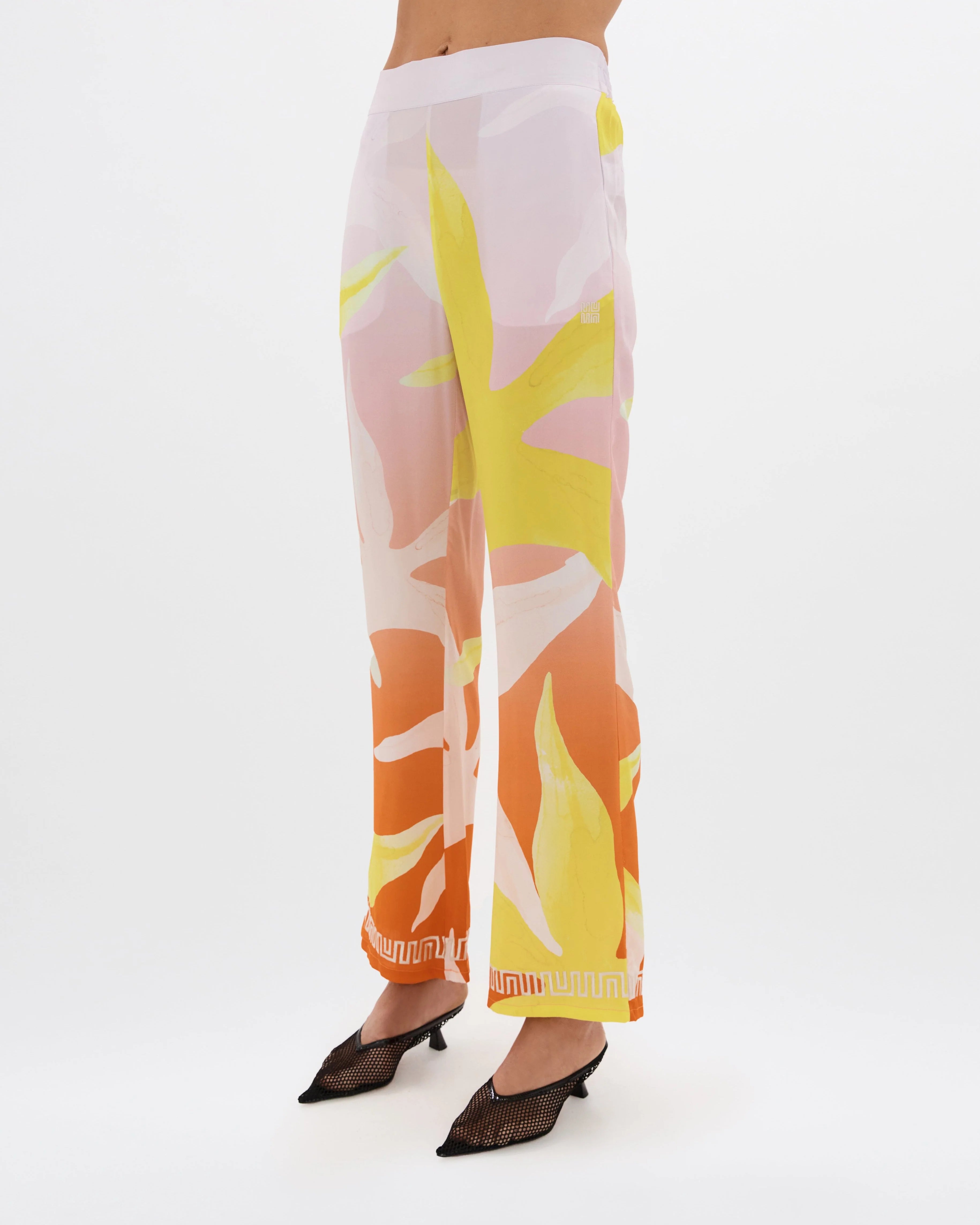 The Dawn Floral Long Pant in Dawn Floral by Muma World is an abstract & painterly expression of the Ghost Orchid endemic to Cuba, featuring a vibrant mix of watercolours - soft yellow, orange, and pink set on a Havana Day gradient. Giving a lively & energetic summer feel, it's relaxed, oversized silhouette is perfect for making a statement in comfort.