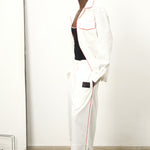 Boxy Cotton Poplin Shirt - White & Red Piping by Paris Georgia.