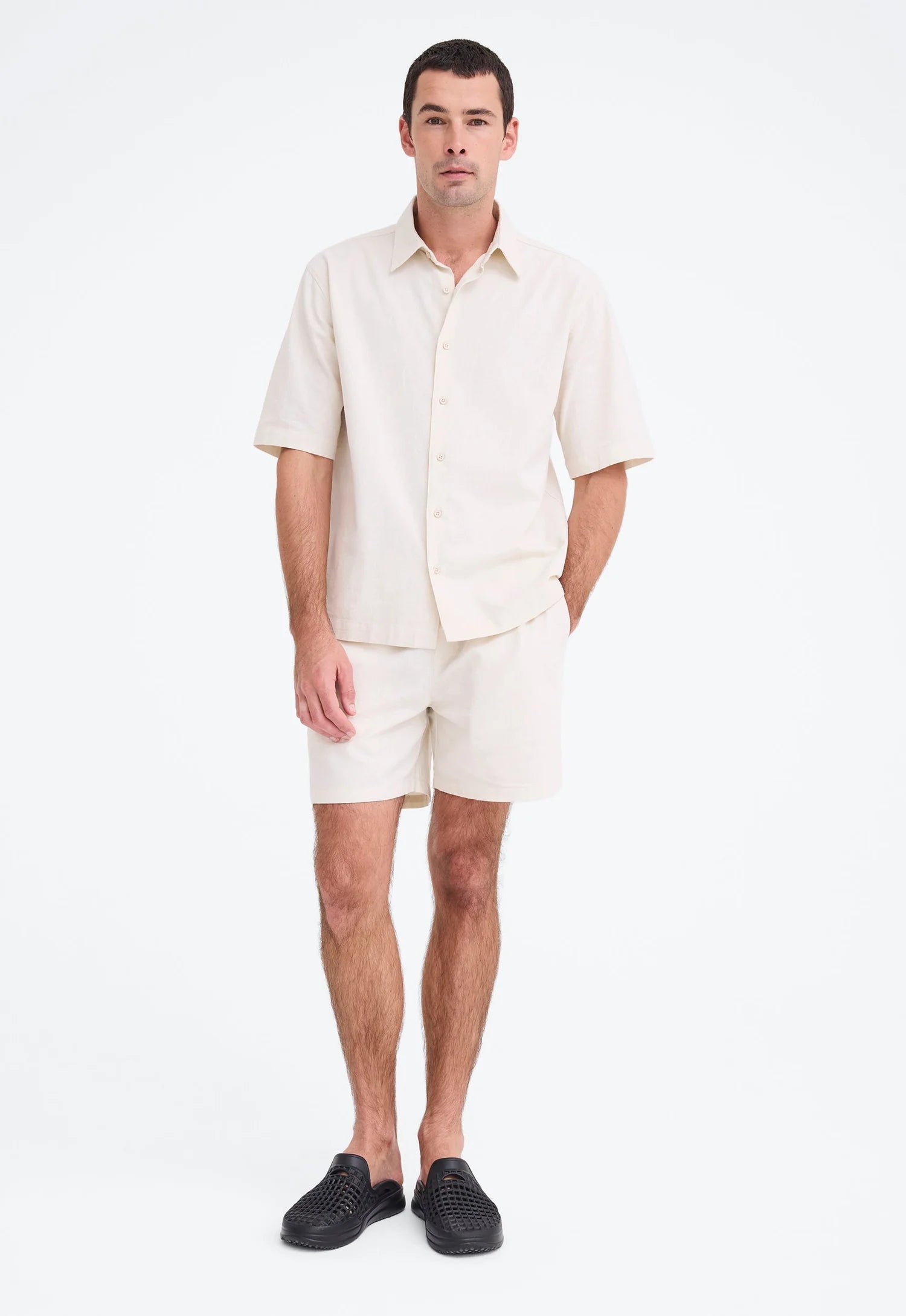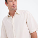 Relaxed sophistication, this mens linen shirt is cut in a relaxed fit for ultimate in comfort and ease. Featuring full length sleeves, a simple button up collar, this piece is sure to become a warm weather favourite.