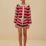 Discover FARM Rio's Red Colorful Crochet Tiles Shorts, showcasing an exquisite tapestry of reds, pinks, and rich maroon tones artfully crafted into a stunning crochet mosaic. These fashion-forward shorts feature a sophisticated tile-inspired pattern with luxurious texture and artisanal quality. The comfortable elastic waistband and breezy silhouette combine practicality with elevated style—the ultimate statement piece for sun-drenched days when effortless sophistication is your aesthetic goal.