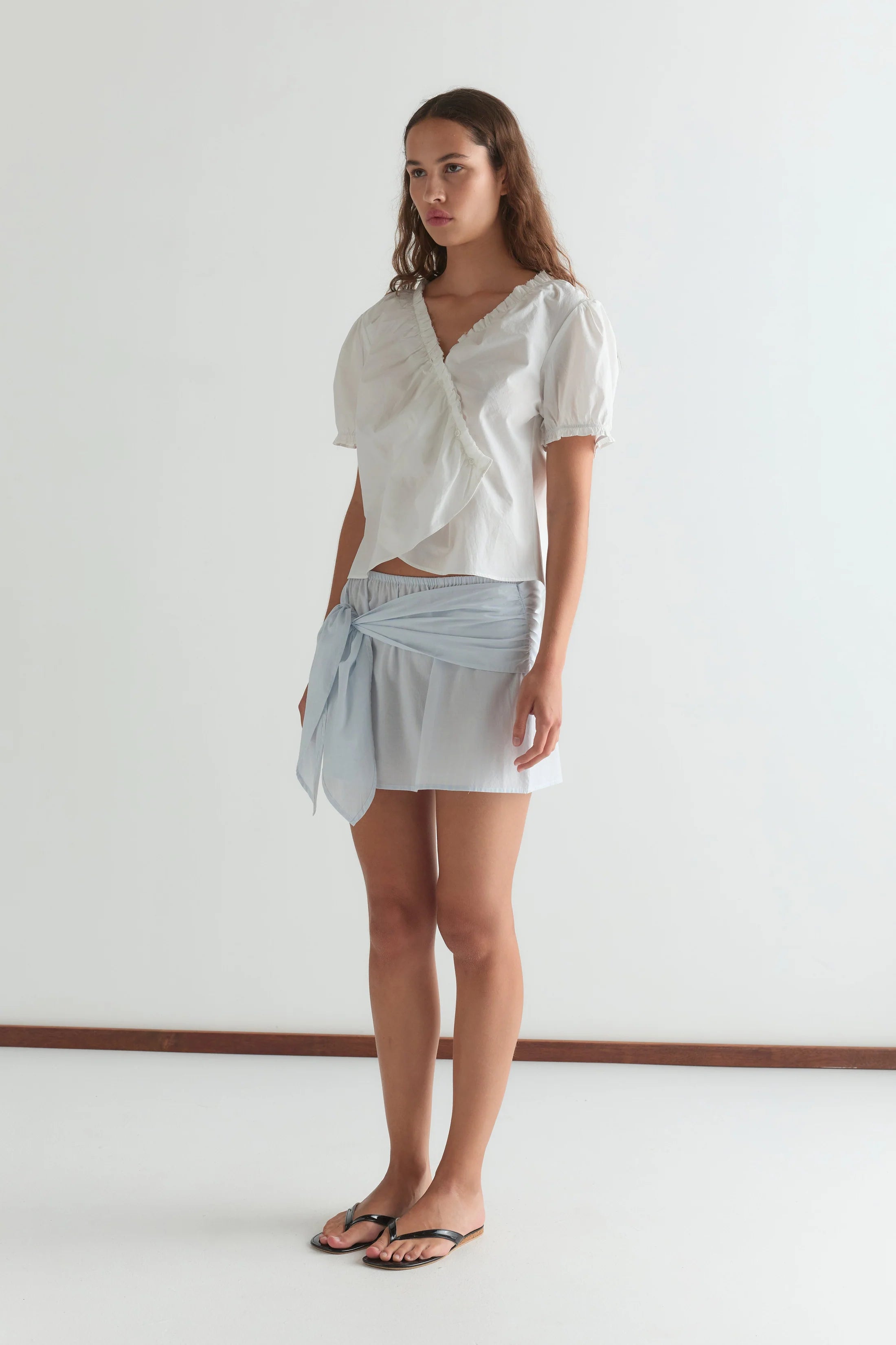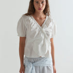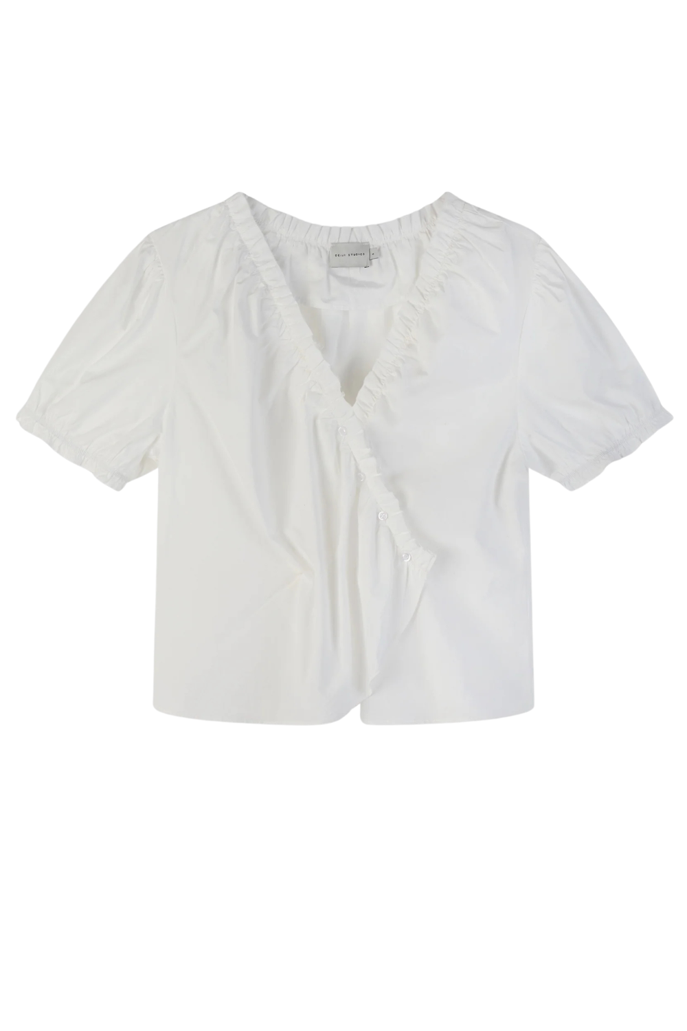 The cross frill top in white by Deiji Studios.