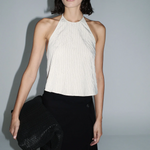The Crushed Halter Top in Petite Pinstripe by St.Agni.
