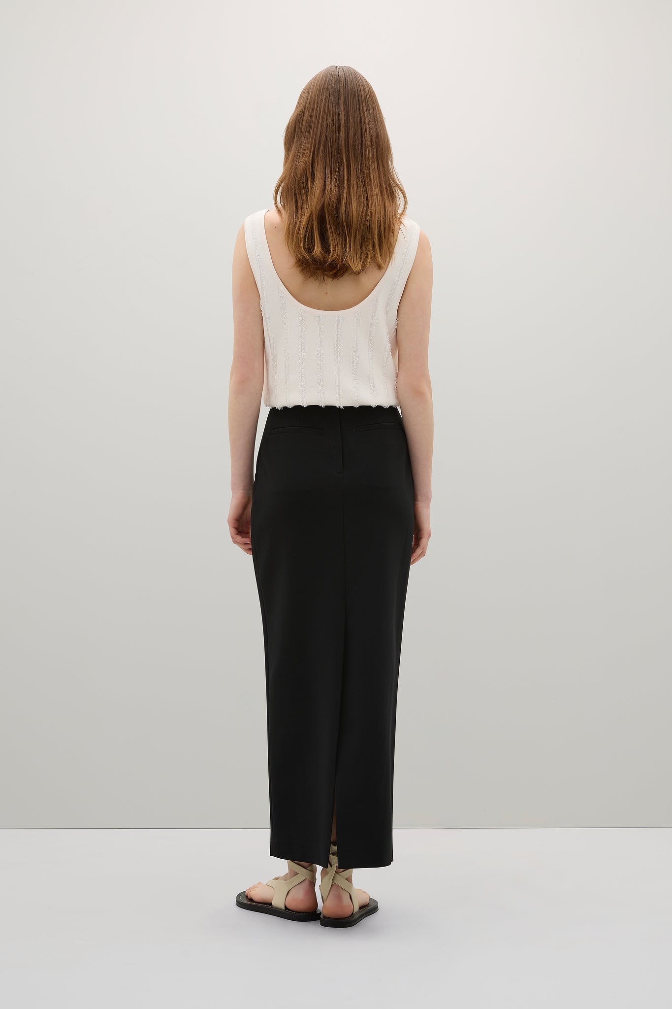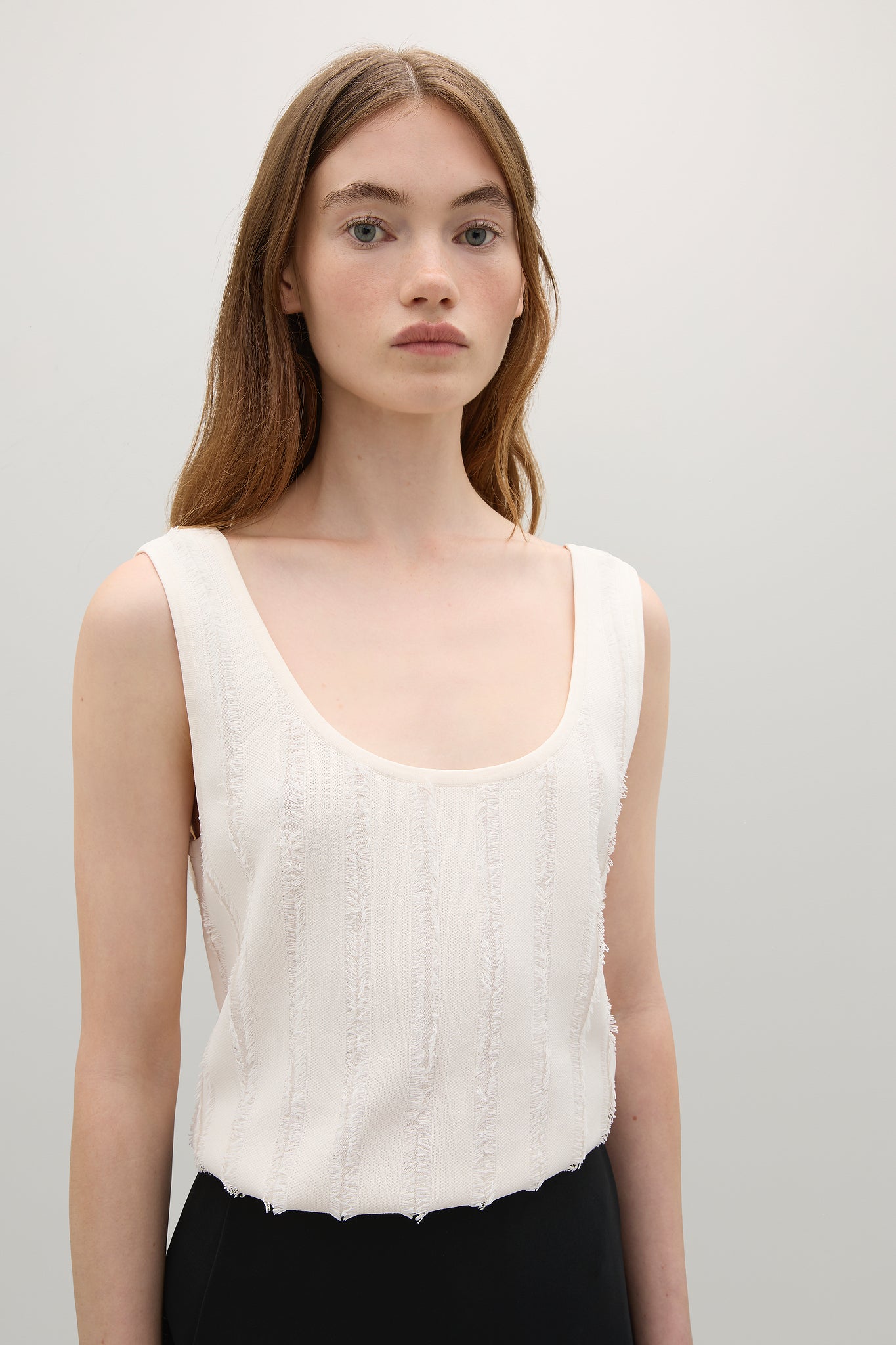 The Faye Tank features a unique fringe knit developed in-house by the A.EMERY team. Its timeless tank silhouette ensures effortless wear, making it a must-have piece in any stylish wardrobe.
