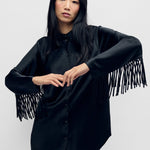 The Fringe Bias Cut Shirt in Black by Silk Laundry.