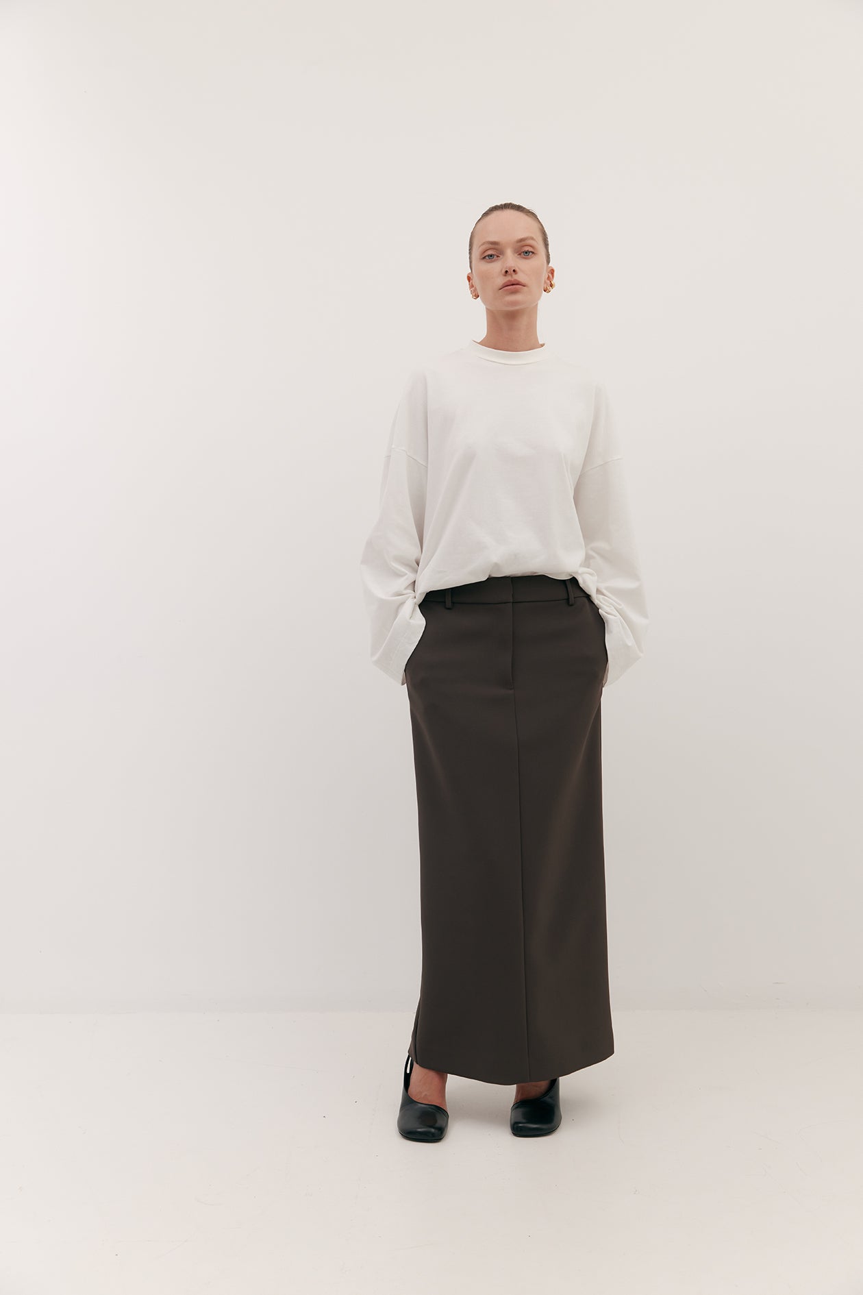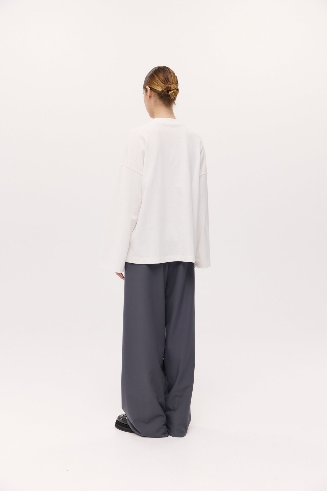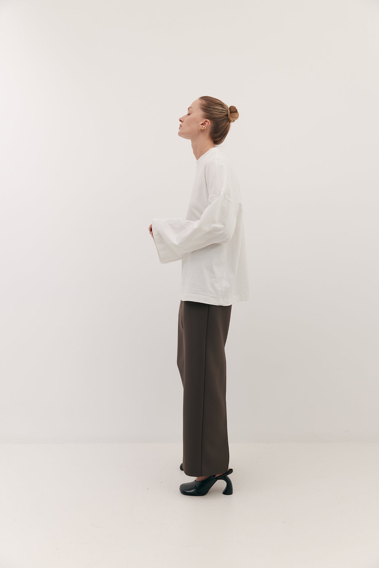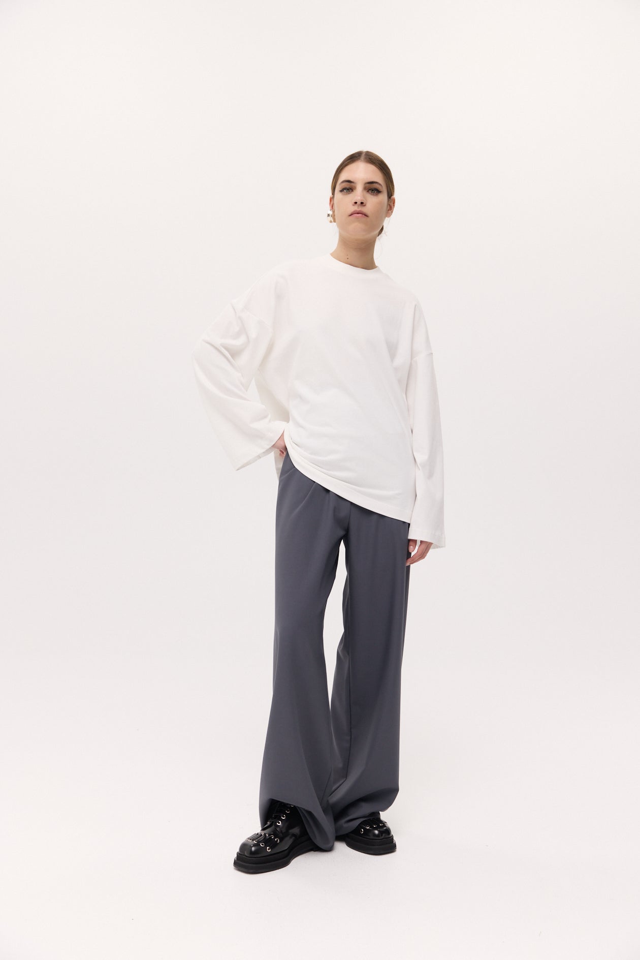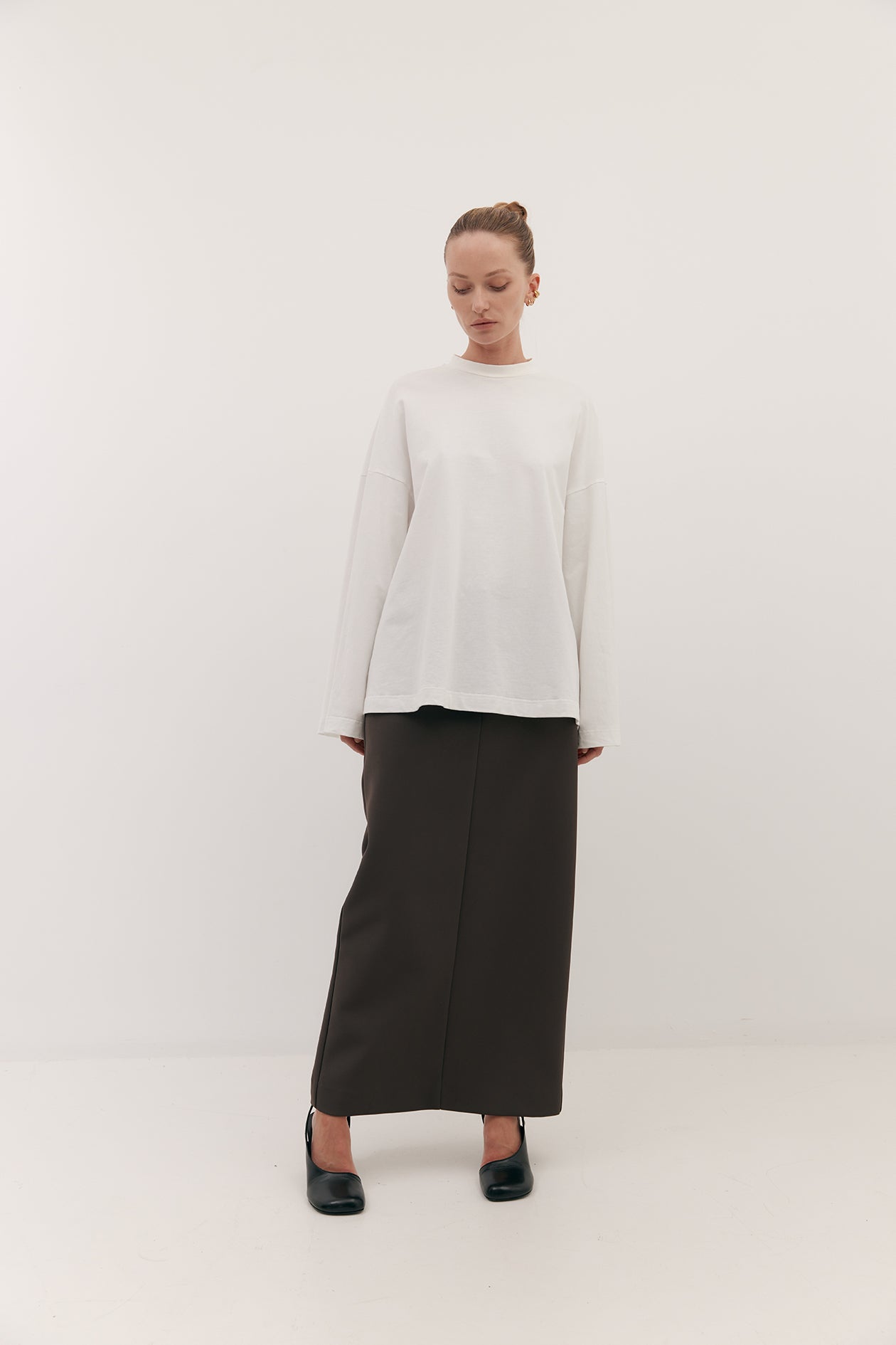 Minimising the difference between the aspirational and the everyday, the Long Sleeve Gibson Tee is cut in a luxurious brushed cotton, with a super soft, suede-like hand feel. Its drop shoulder gives an oversized proportion, seamlessly inserting itself into a daily wardrobe uniform.