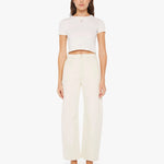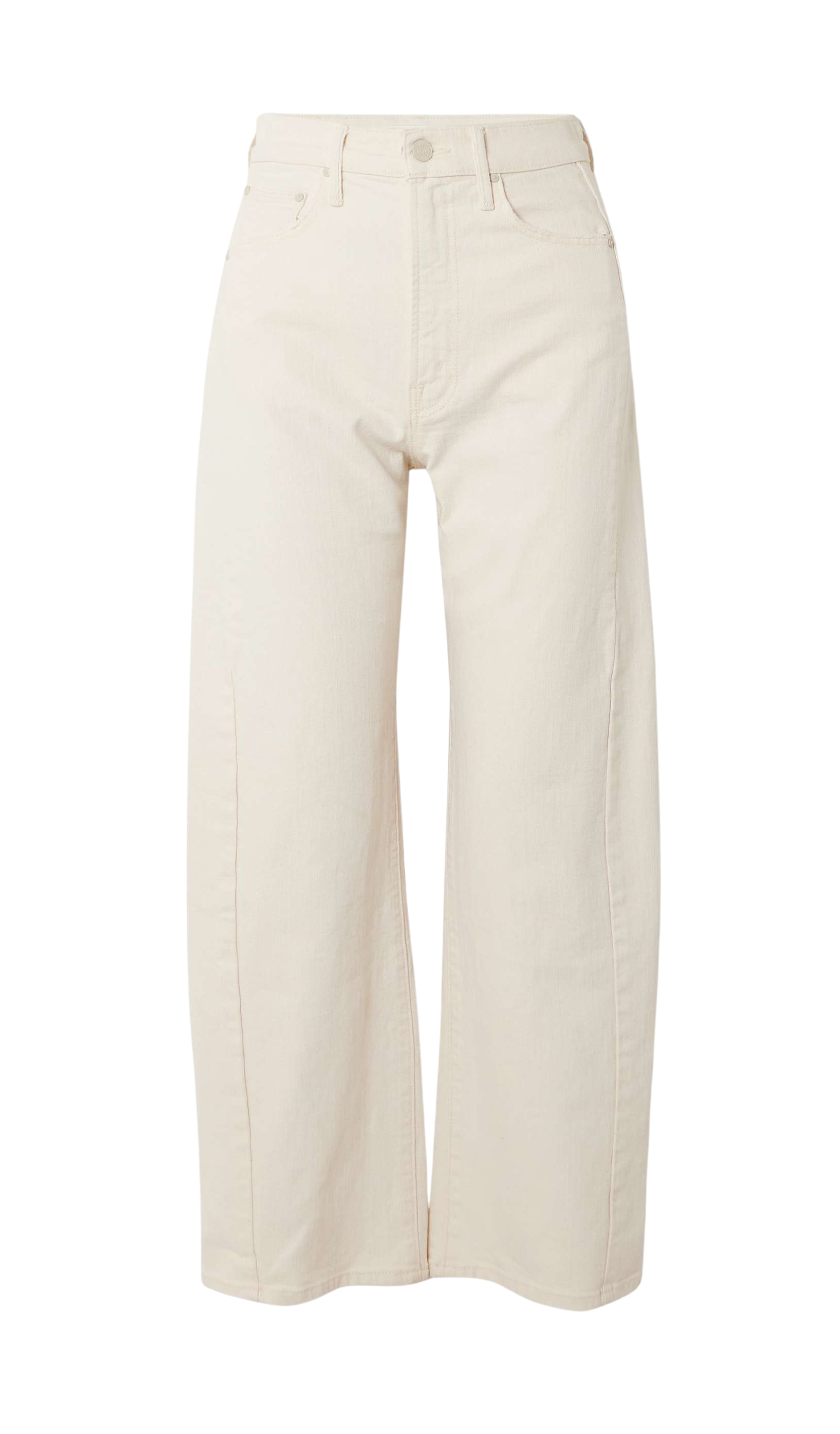 These Half Pipe Ankle Jeans deliver a chic, high-rise silhouette that enhances your waist beautifully. Featuring a wide, curved leg that narrows to a neat ankle-length hem, they pair effortlessly with sandals, heels, sneakers, or boots. Crafted from a premium cotton blend with a hint of stretch, the creamy white Act Natural shade is complemented by subtle tonal hardware. Comfortable and on-trend, these must-have Mother jeans reinvent classic denim with a modern edge, making your go-to jeans-and-top look effortlessly stylish.