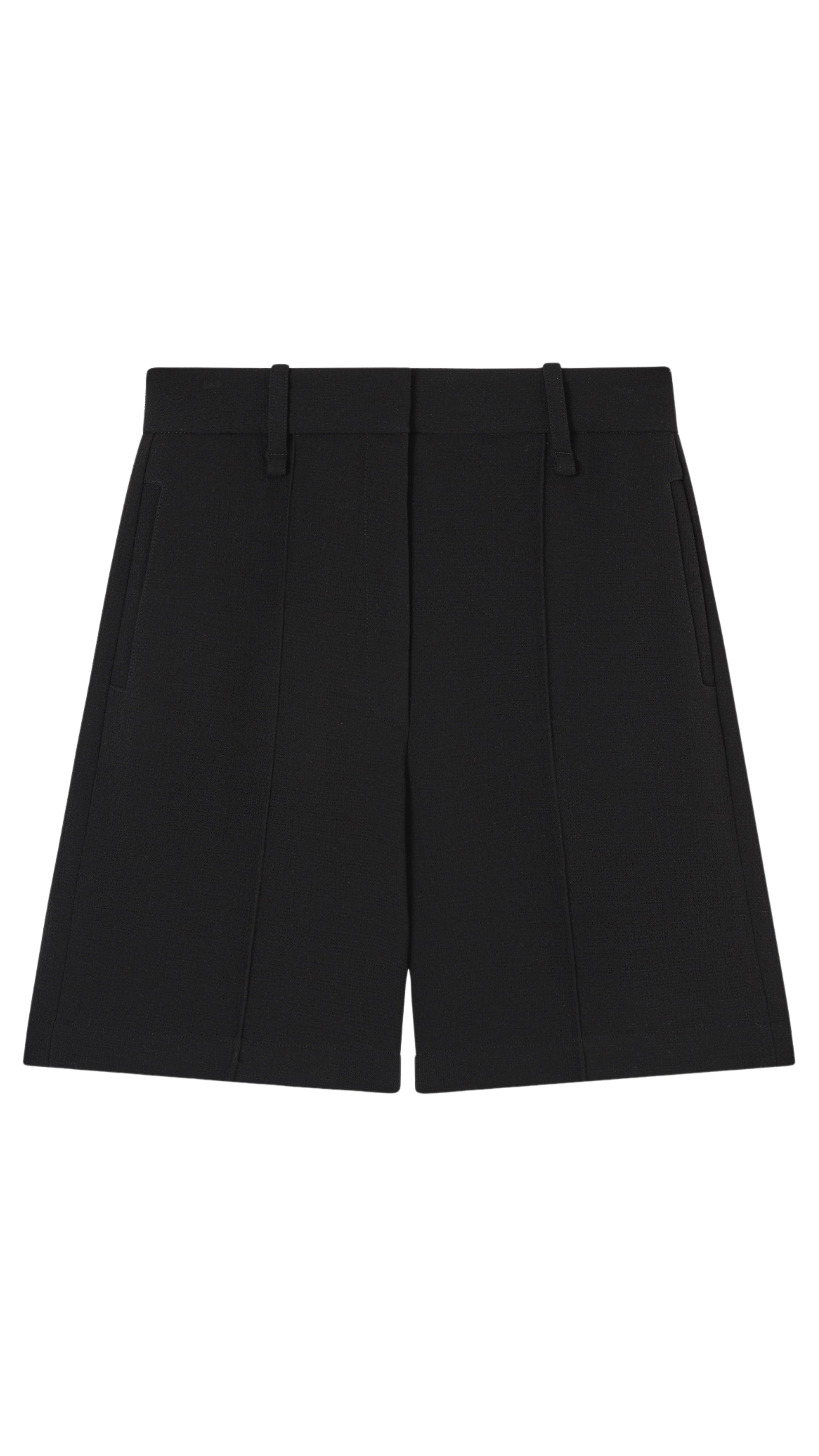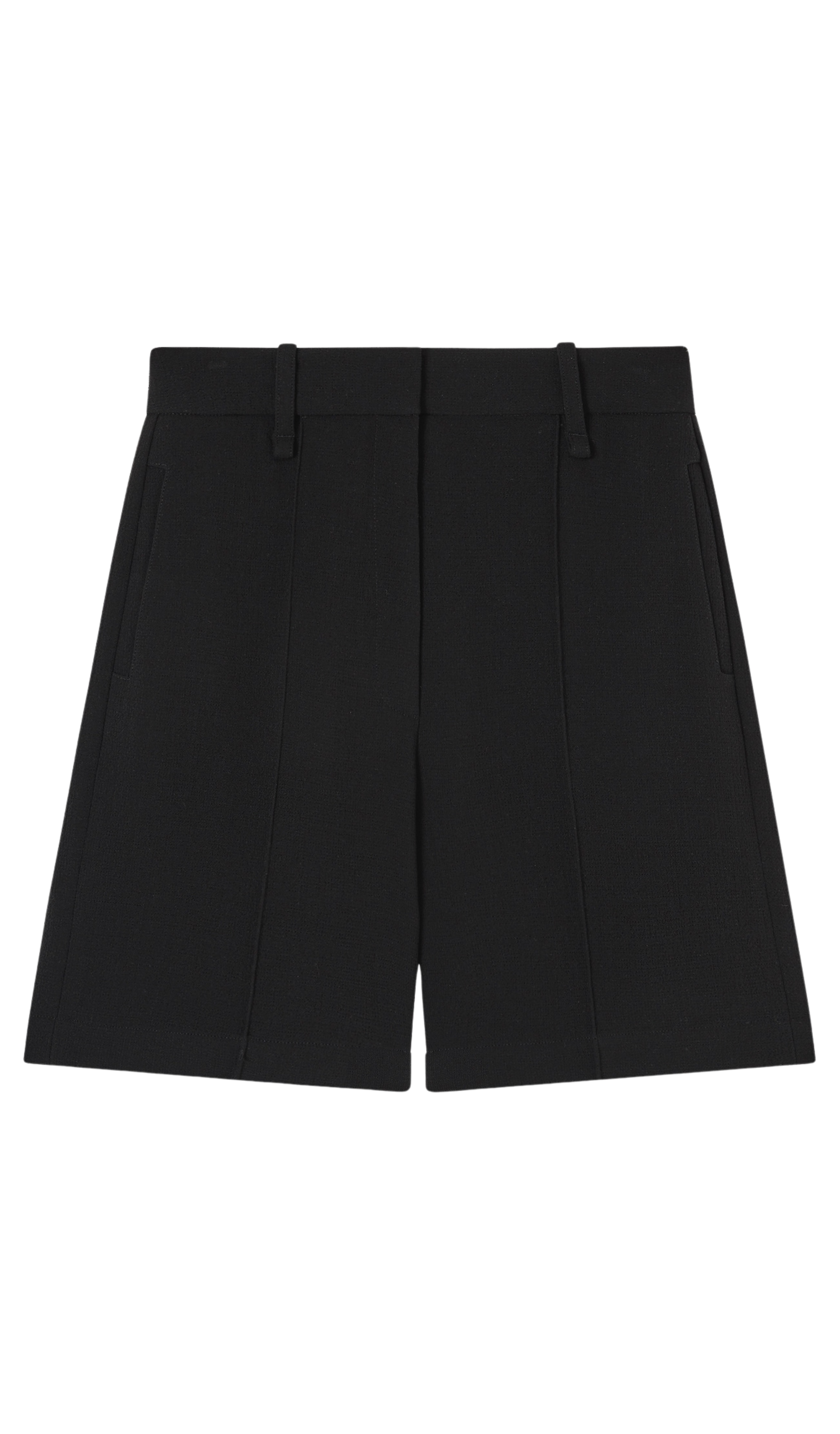 The Keely Short, made from premium Turkish wool, offers a chic tailored fit with pintuck detailing on both front and back legs, complemented by belt loops and unique cutaway pocket accents. Due to its delicate fabric, it’s best to avoid rough surfaces and be cautious with jewellery and accessories to maintain its pristine condition.