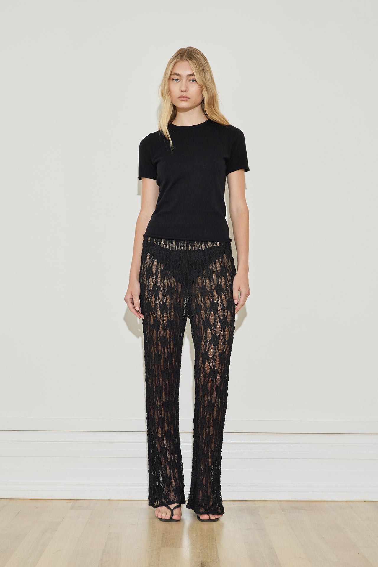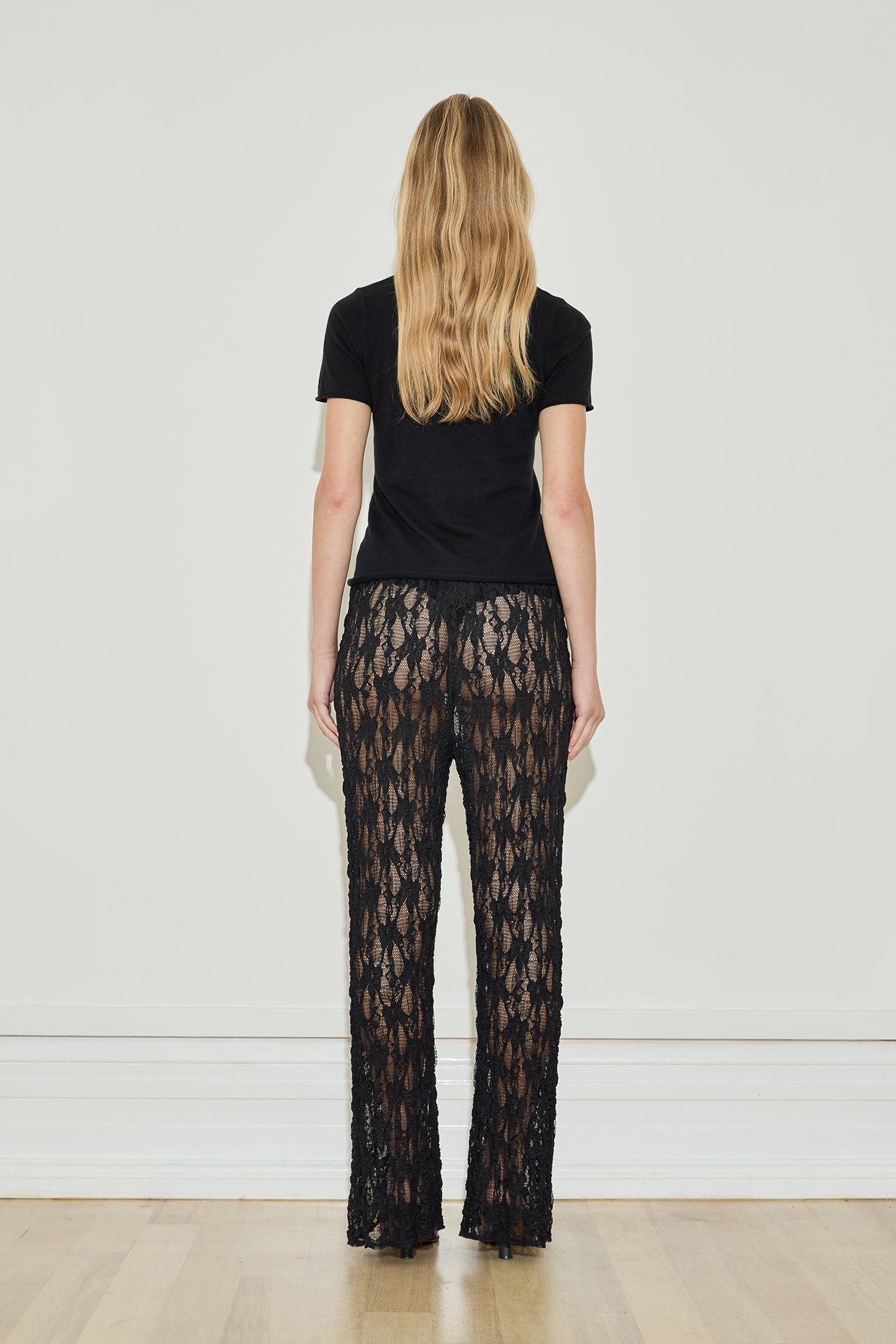 These Lace Pants are a #peggygirl favourite. Made from sheer lace and feature a straight leg cut, perfect for mid-waist wear. They have a touch of stretch for a great fit, and an elastic waistband for added comfort.