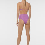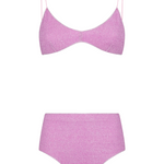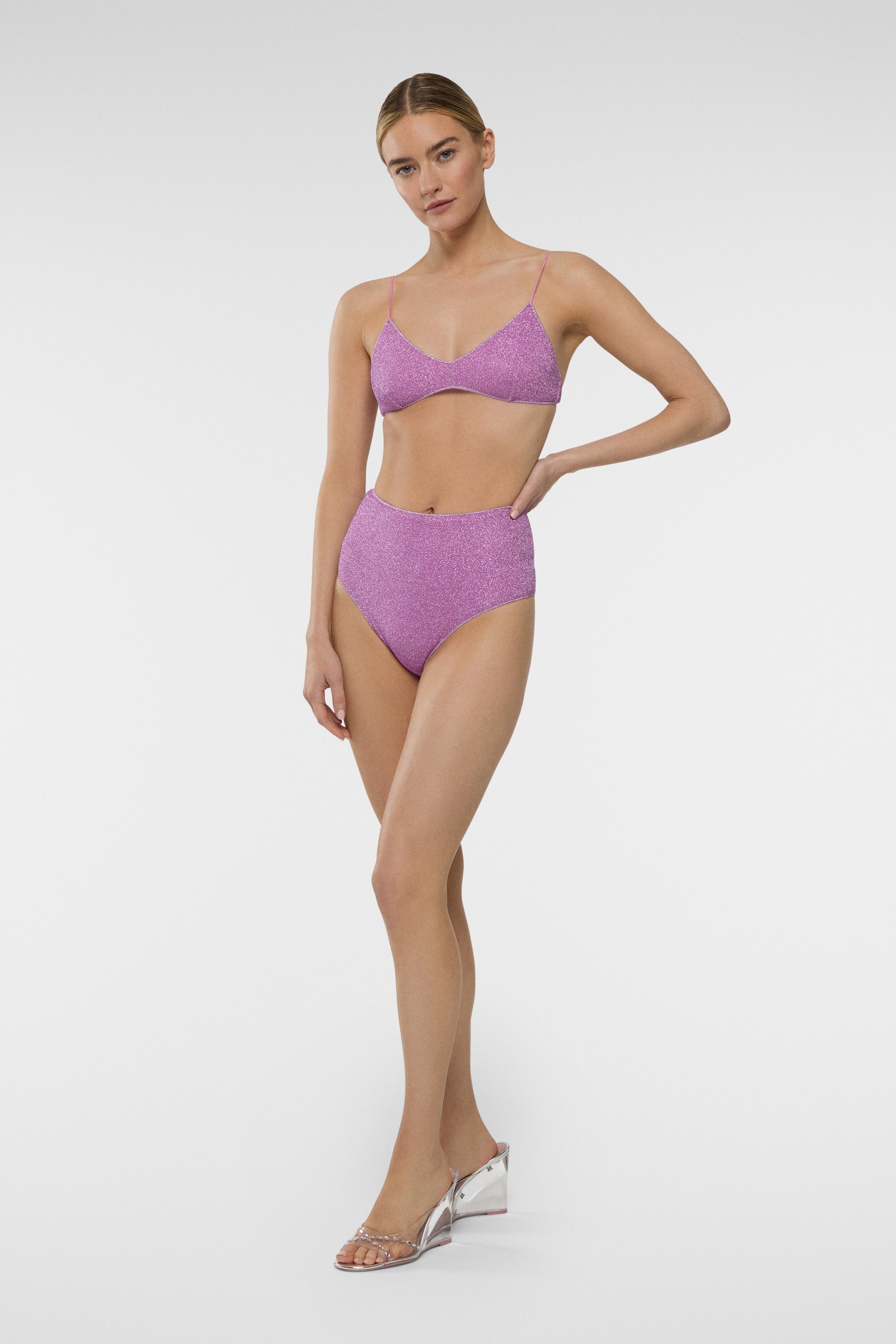The Lumiere Bra with high waisted bottoms by Oseree is a two piece bikini featuring metallic bra top with high waisted bottoms