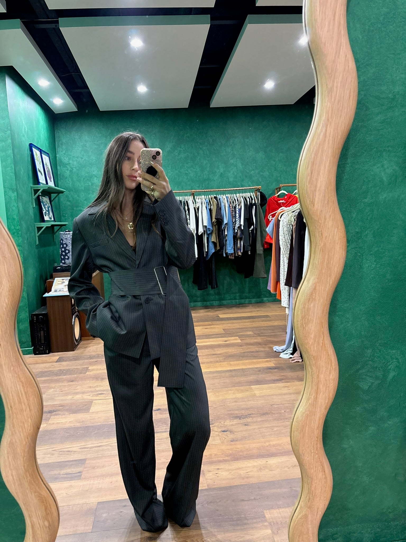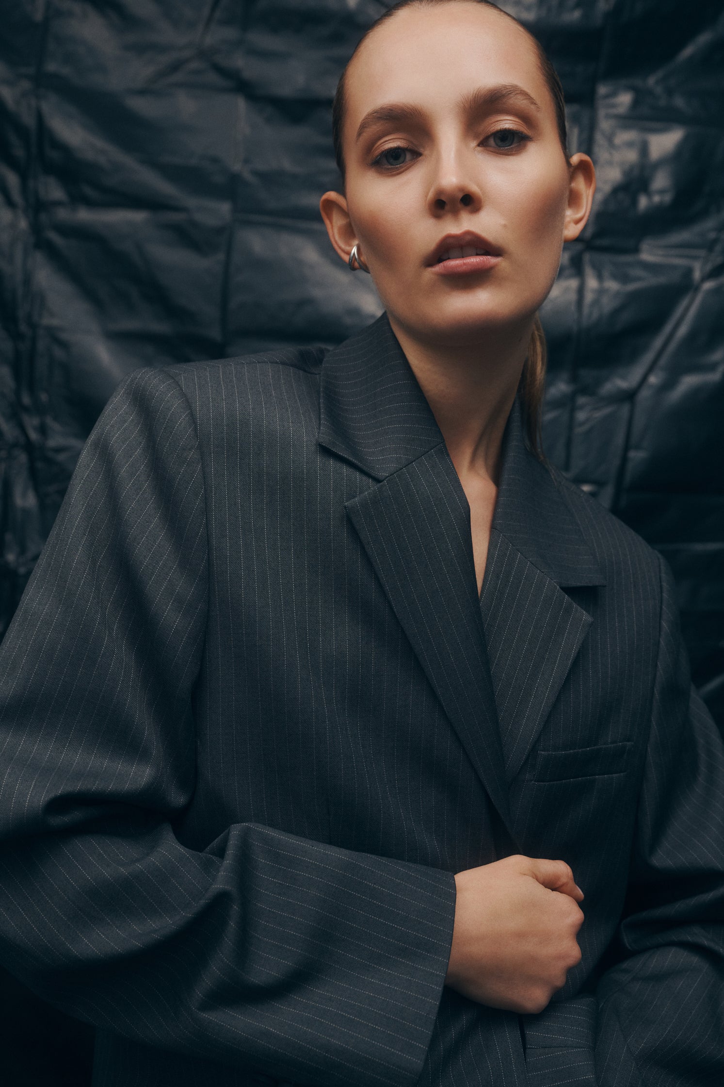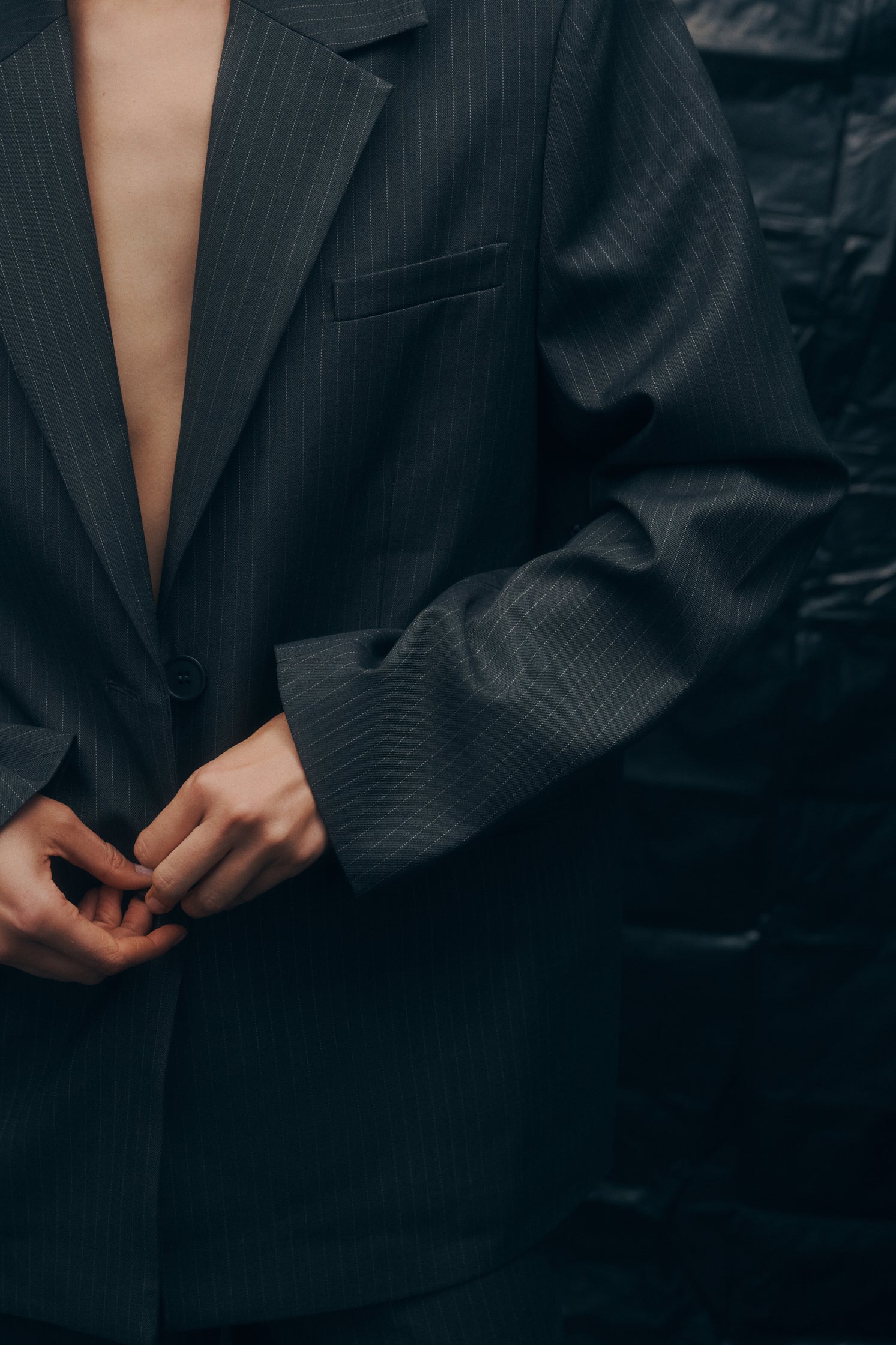 The Margot Blazer in Grey Pinstripe by One Of Others.