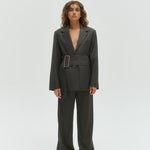 A relaxed blazer with removable feature belt and elegant buckle detailing, designed for effortless versatility. Wear it structured with the belt or unbelted for a contemporary, laid-back silhouette. The Margot Blazer transitions seamlessly from office to weekend, offering sophisticated styling options in one investment piece.Fabrication: 10% Wool / 70% Polyester / 20% Viscose