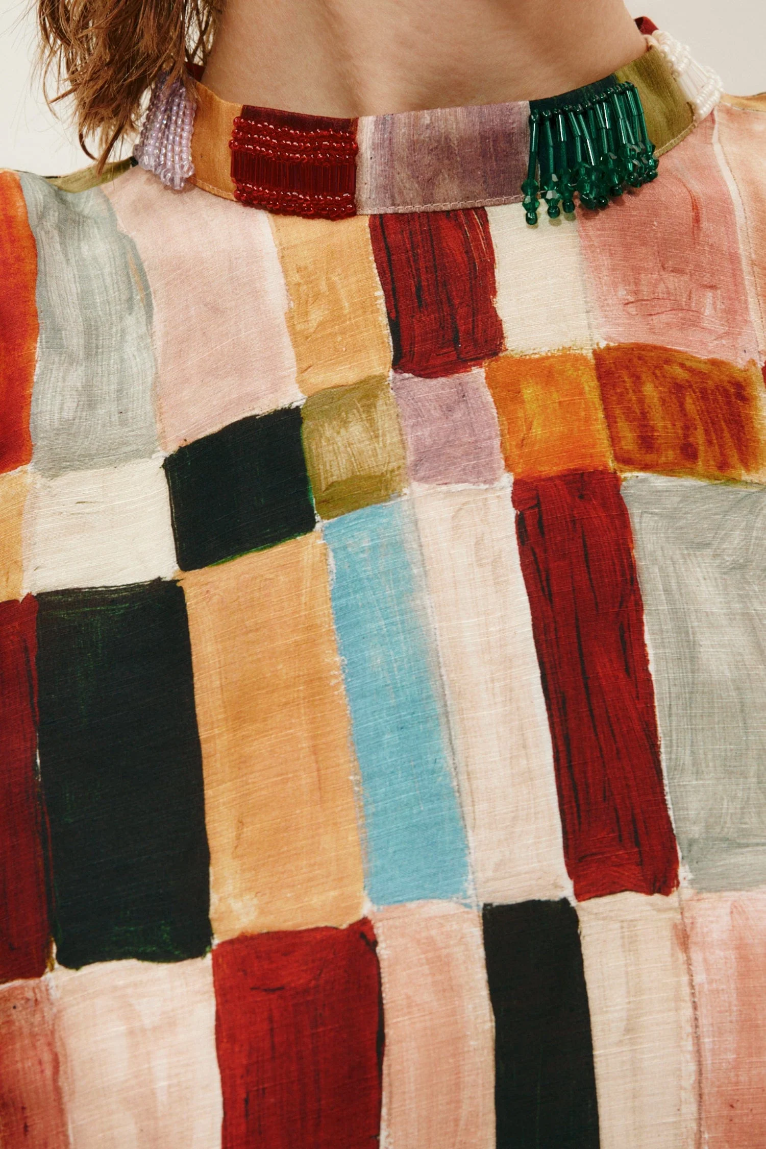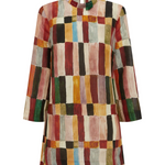 Artwork in collaboration with Laurence Leenaert, this relaxed mini dress showcases an effortless silhouette perfect for warm-weather styling. The round neckline features a distinctive button and loop closure at the centre back, adding a refined detail to the casual cut. Crafted from a luxurious blend of 80% linen and 20% silk, the fabric offers breathable comfort with subtle elegance. The natural texture of linen is softened by silk's lustrous finish, creating a piece that moves beautifully against the skin. Refer to the size guide for precise garment measurements and flat lay product shots for accurate colour representation. For longevity, delicate dry clean only is recommended.
