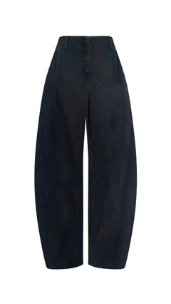 An oversized crewneck pullover made from midweight 100% cotton fleece in washed navy that's brushed on the inside.