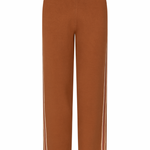 The Organic Motley Track Pant is a new version of the original Motley Track Pant, a popular gender-neutral piece from Nagnata SAMA. It has a relaxed, high-rise fit with an elastic jacquard waistband and a unique woven tape detail on the back pocket. Made from a heavier bird's eye jacquard fabric, it holds its shape and easily transitions from studio wear to street style. Features include tapered legs, contrast jacquard stripes, and a back pocket, crafted from an organic cotton blend.