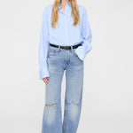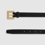 Crafted from black 100% cow leather, the Nicola Belt has a slight sheen and features a custom square-shaped buckle in 14k gold-plated zinc with subtle ANINE BING branding. This everyday style is also slightly padded.