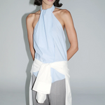 The Oxford Halter Tie Back Top in Ciel Blue St.Agni.