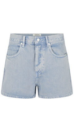 The Patty Pinstripe Wool Top in Denim by Nagnata.