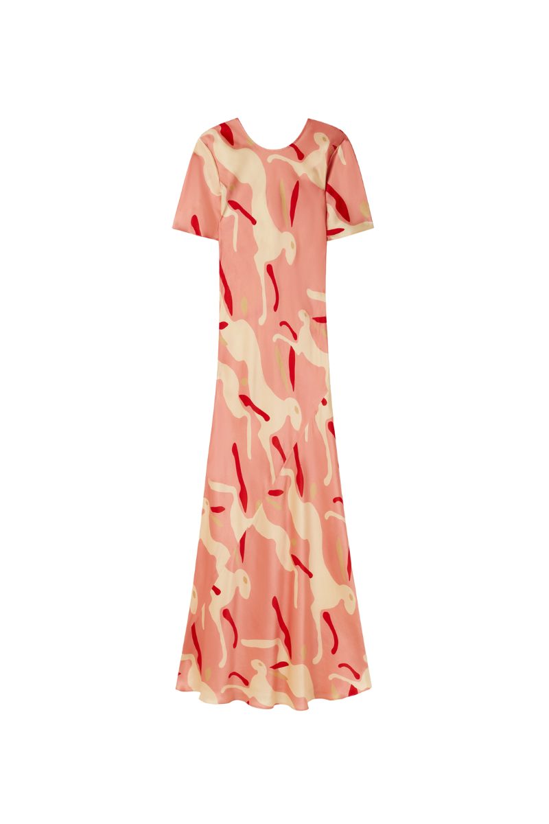 Silk Laundry bias cut dress crafted in 100% silk detailed with a round neckline with logo chain at the back. Cut on the bias to a fluid fit and ankle-length hemline.