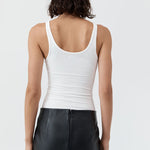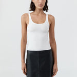 The Soft Jersey Slim Scoop Tank in White by St. Agni.