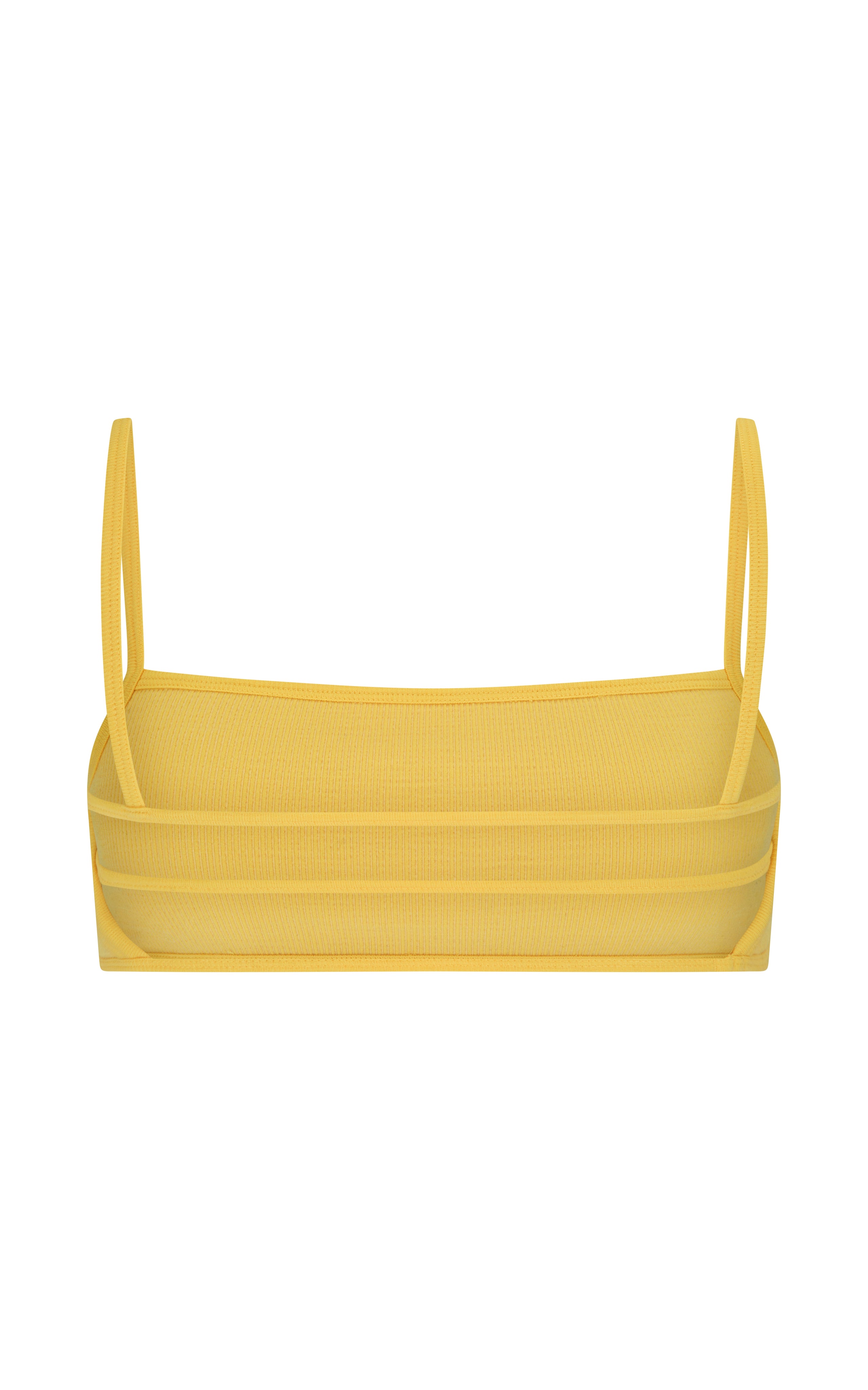 Merino wool seamless square-neck bralet in Nagnata's signature two-tone rib fabrication featuring strappy back design details. Fully lined, this superfine Merino wool style offers mild compression for support and breathability and features a fabric bind underbust.