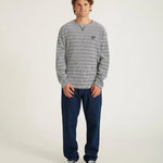 Striped Waffle Relaxed Long Sleeve Tee - Ivory