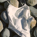 INNES LAUREN Scoop One Piece is crafted from recycled Italian fabric ECONYL® in a timeless white. This fabric is crafted from regenerated fishing nets.