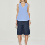 The Vintage Halter Cami showcases a classic striped cotton design, a flattering V-neckline, and a tie closure at the back. Its relaxed and adaptable fit pairs perfectly with MAISON ESSENTIELE Low Rise boyfriend Denim Jeans or any denim you prefer, creating an effortlessly chic daytime outfit.